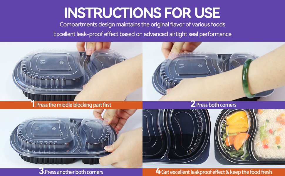 1. Kotak makan siang sekali pakai kami dapat ditumpuk untuk menghemat ruang untuk pernikahan, sekolah, pesta, tamasya dan restoran, dll., dan memberi Anda pengalaman yang nyaman. Tutup penutupnya dengan cepat dan kemas salad, burger, kue, nasi, dan lainnya dengan mudah.
